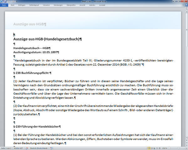 Bei elektronischen Archivierungsverfahren kommt grundsätzlich eine Speicherung der Daten und Dokumente in Form sogenannter Coded Information (CI-Format oder inhaltliche Wiedergabe) oder in Form von Non Coded Information (NCI-Format oder bildliche Wiedergabe) in Betracht. Im CI-Format gespeicherte Daten sind unmittelbar computergestützt auswertbar, NCI-Dokumente mittelbar auf der Basis separat zum Dokument zu erfassender Indexinformationen. Physisch empfangene Dokumente können technisch nach ihrer elektronischen Erfassung (Scannen) im NCI-Format oder alternativ nach entsprechender Verarbeitung (z. B. Optical Character Recognition OCR) im CI-Format gespeichert werden. Elektronische Dokumente (z. B. elektronisch empfangene Handelsbriefe, originär im IT-System erzeugte Buchungen, Auftragsbestätigungen, Bestellungen und andere Daten) werden üblicherweise im CI-Format gespeichert.