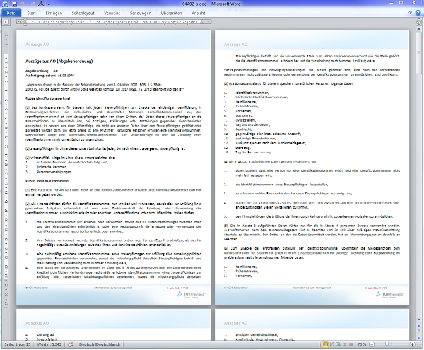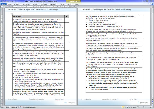 | • | IT-gestützten Archivierungsprozessen (Dokumenten- und Datenfluss von aufbewahrungspflichtigen Dokumenten und Daten von dem Zeitpunkt des Beginns ihrer Rechnungslegungsrelevanz über ihre langfristige und unveränderliche Aufbewahrung bis zur abschließenden Vernichtung) [1]. |