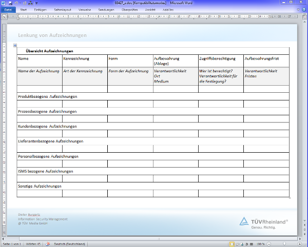 Aufzeichnungen gehören zu der in ISO/IEC 27001 [1] geforderten Dokumentierten Information.