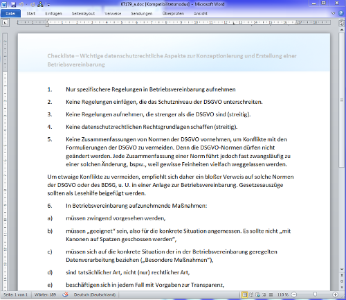 Der Beitrag erläutert die europarechtlichen Hintergründe und zeigt, dass es zumindest in engen Grenzen weiterhin zulässig ist, in Betriebsvereinbarungen Regelungen für Beschäftigtendaten zu schaffen. Diese Grenzen werden erklärt und praktische Tipps gegeben, wie man bei der Neufassung, aber auch bei Überarbeitung des Bestands eine DSGVO-konforme Betriebsvereinbarung schaffen kann. Arbeitshilfen: von: |