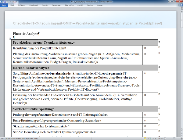 Die hohe Komplexität des Themas ITO-Projektmanagement erlaubt in diesem Beitrag indes nur die Thematisierung der wesentlichsten Schwerpunkte als Leitfaden. Arbeitshilfen: von: |