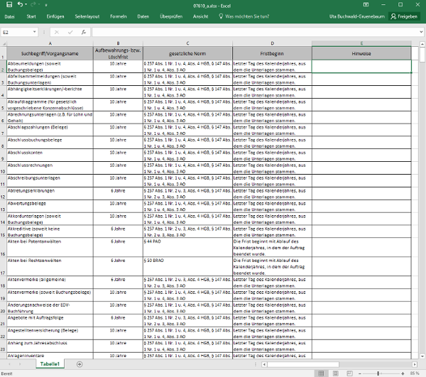 Unterlagen, Verträge, Geschäftsbriefe, Steuerunterlagen, Urkunden und andere Dokumente müssen im Sinne dieser Vorschrift so archiviert werden, dass sie im Bedarfsfall schnell auffindbar sind. Im Geschäftsleben sind das hauptsächlich wichtige Verträge und Rechnungen oder Belege, die später als Nachweise für die Finanzbehörde wichtig sind.