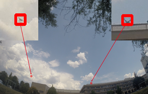 Da die Drohnen relativ klein und oft unauffällig sind (s. Abbildung 1), unterschiedlich aussehen, die Sichtlage (s. Abbildung 2) oder Sichtverhältnisse nicht zu jeder Uhrzeit und bei jedem Wetter gut sind (s. Abbildung 3), kann selbst ein trainiertes Auge diese kleinen Objekte, die schnell beweglich am Himmel fliegen, nicht frühzeitig detektieren, um die entsprechenden Abwehrmaßnahmen einzuleiten.